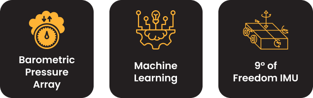 Delta blends barometric pressure sensors for elevation, a 9-degree IMU for real-time pitch and roll, and smart machine learning algorithms for steady, reliable results.