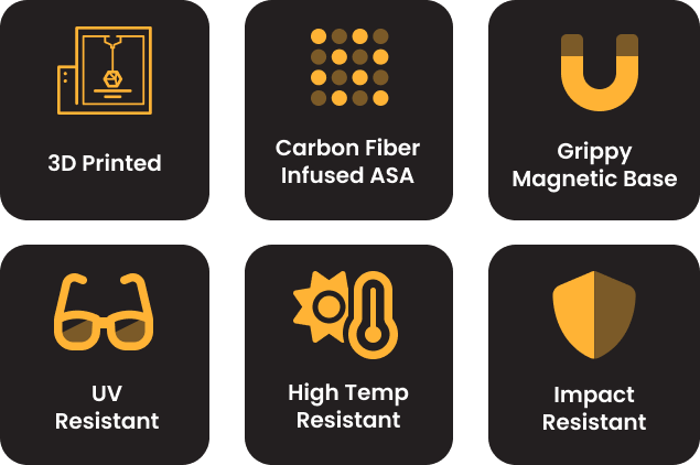 Delta’s carbon fiber-infused, UV and heat-resistant 3D-printed case is built to take a beating—handling sun, impacts, and the roughest sites without missing a step. The grippy magnetic base sticks securely to your equipment, so Delta stays put through bumps, vibration, and long days in the field.