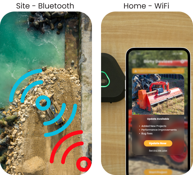 Unlike laser-based systems, Delta’s sensors don’t need line of sight. Dig below grade, work around obstacles, and check your grade and orientation instantly, no hopping in and out, no moving lasers, no guesswork. Just tap your phone in the cab and keep working.